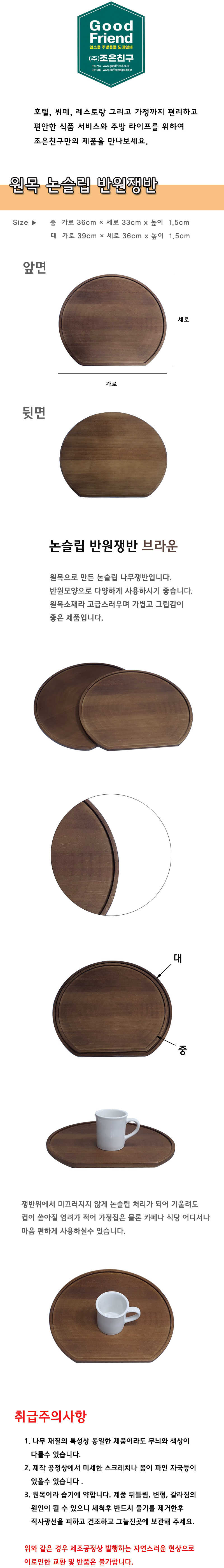 원목 논슬립 반원쟁반